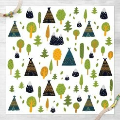 Bilderwelten Indianertipis im Wald mit Bergkuppen – 120 x 120 cm – Durchmesser: 120 cm