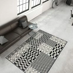 Kayoom Hochflorteppich Agadir 410 – Webstoff – Weiß / Schwarz / Multi – 290 x 200 cm