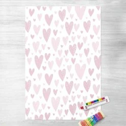 Bilderwelten Kleine und große gezeichnete Rosa Herzen – 60 x 90 cm – Durchmesser: 90 cm