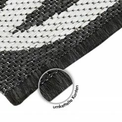 Der in- und outdoorgeeignete Teppich besticht durch seinen schlichten und rustikalen Charme. Die aufeinander abgestimmten Farben sorgen zusammen mit dem zurückhaltenden Muster nicht nur im Wohn- oder Schlafbereich, sondern auch im Flur, dem Arbeitszimmer oder dem Gästezimmer für ein stimmiges Raumbild. Der Webteppich wird durch sein Material aus 100 % Polypropylen besonders strapazierfähig und langlebig. Das regelmäßige Saugen genügt um das Flachgewebe zu pflegen.