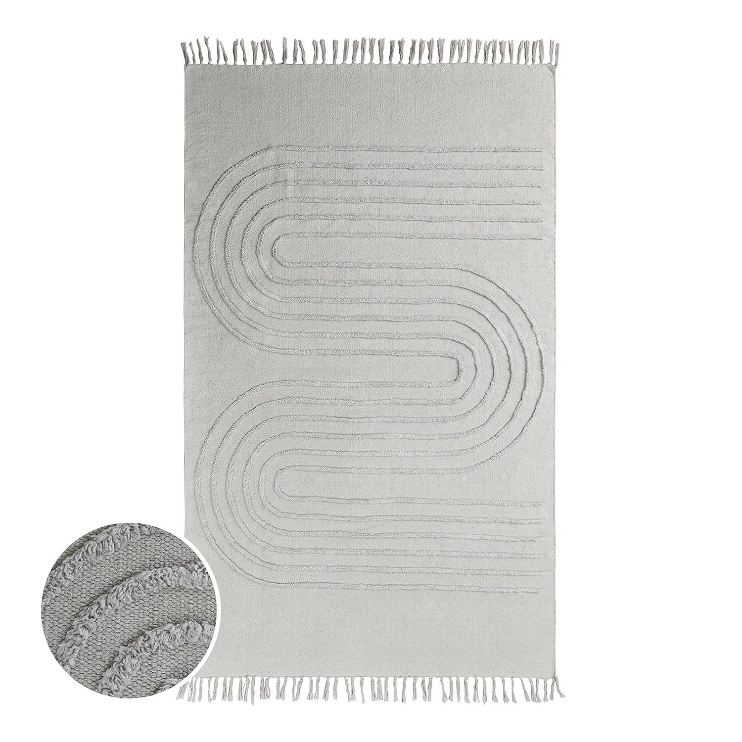- Weitere Qualitätsmerkmale: Beim gemütlichen Wohnen führt am handgefertigten Cotton Way Teppich 120 x 180 cm eigentlich kein Weg vorbei. Denn dieser hellgraue Teppich aus reiner Baumwolle verbreitet Wohnlichkeit mit angesagten Fransen und einem harmonischen Wellenmotiv, das sich in höherem Flor dekorativ abhebt. Das fühlt sich beim Barfußlaufen besonders angenehm an – und sorgt optisch für einen unaufdringlichen, aber raffinierten Effekt. Passender Cotton Way Läufer erhältlich.Moderner Look: für das unkomplizierte Wohnen und LebenVielseitig einsetzbar: im Bad, im Flur, im Schlafzimmer Pflegehinweise: Wir empfehlen eine professionelle Reinigung. Verschüttete Flüssigkeiten sollten jedoch sofort gereinigt werden, indem sie mit einem sauberen Schwamm oder einem Tuch entfernt werden. Wir empfehlen Ausklopfen zur Reinigung.