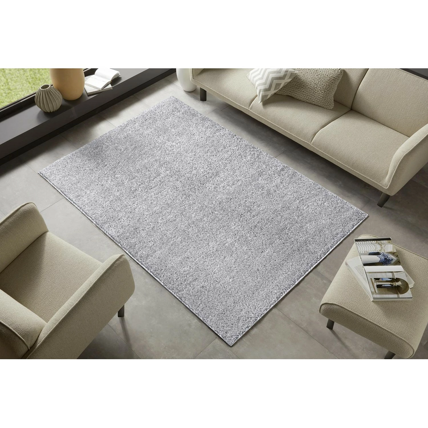 - Weitere Qualitätsmerkmale: Moderner Hochflor Teppich Amelie, Weicher Flor, Unifarben Design, Dank des sorgfältig ausgewählten Materials aus 100% Polypropylen, ist dieser Teppich sehr strapazierfähig und pflegeleicht, das Auslegen in Räumen mit einer Fußbodenheizung ist für diesen Teppich kein Problem, Farblich angepasste Kettelung an allen Seiten des Teppichs