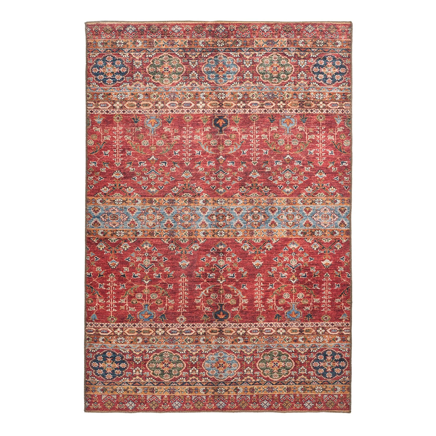- Weitere Qualitätsmerkmale: Flachgewebeteppich, Baumwollrücken, Muster im Ethno-Stil