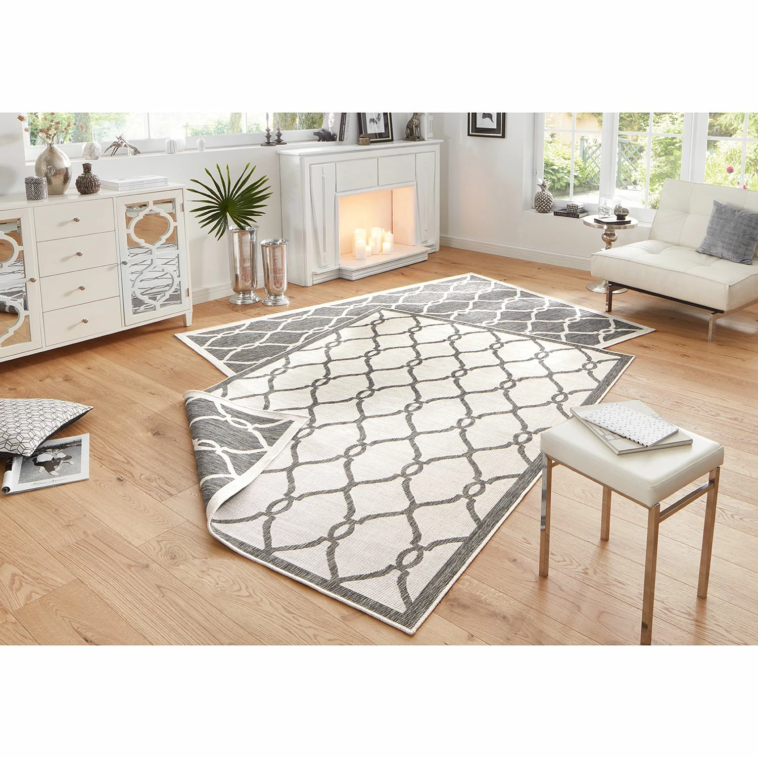- Lieferumfang: In-/Outdoorteppich ohne Dekoration