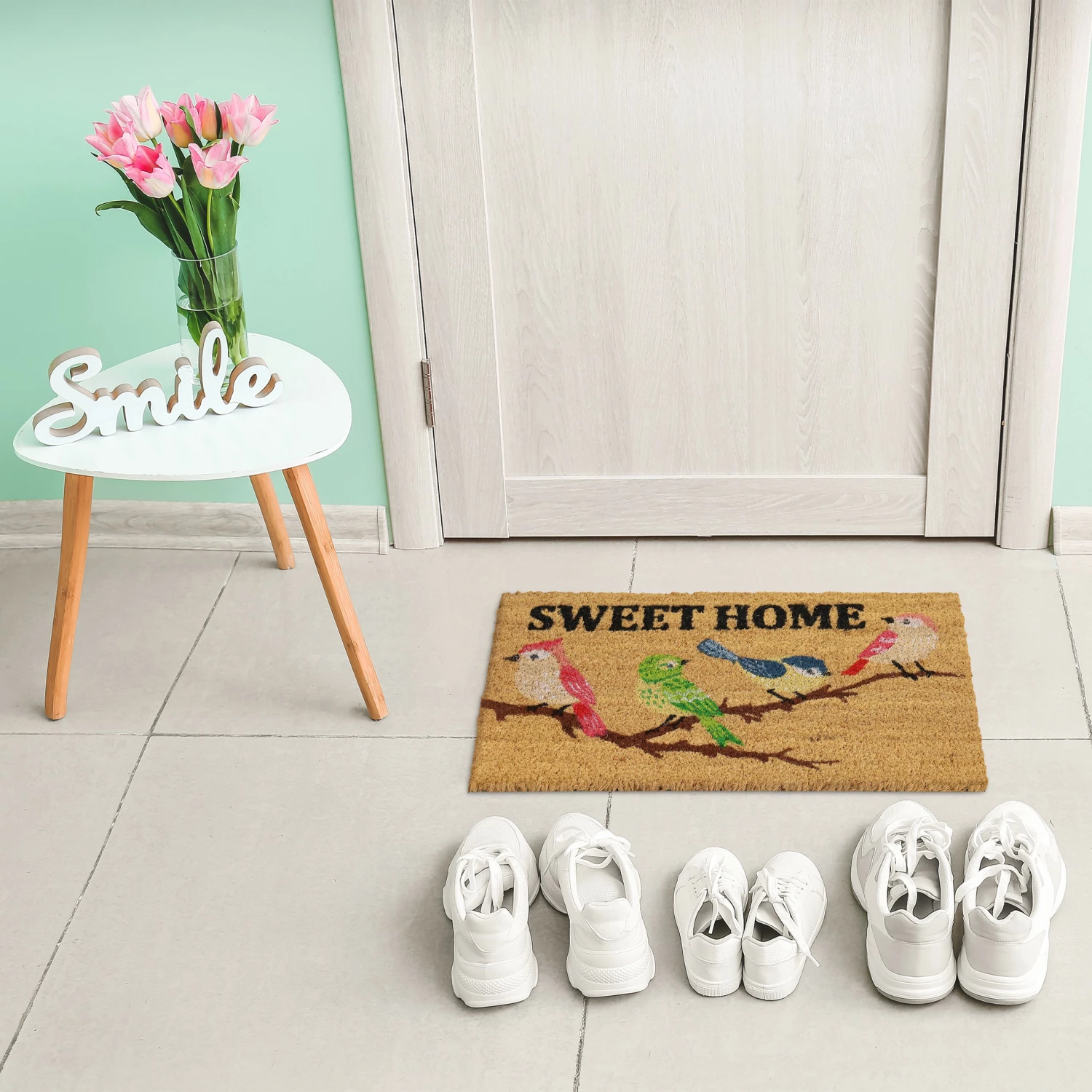 – Dekoratives Design mit Vögeln und Sweet Home-Schriftzug