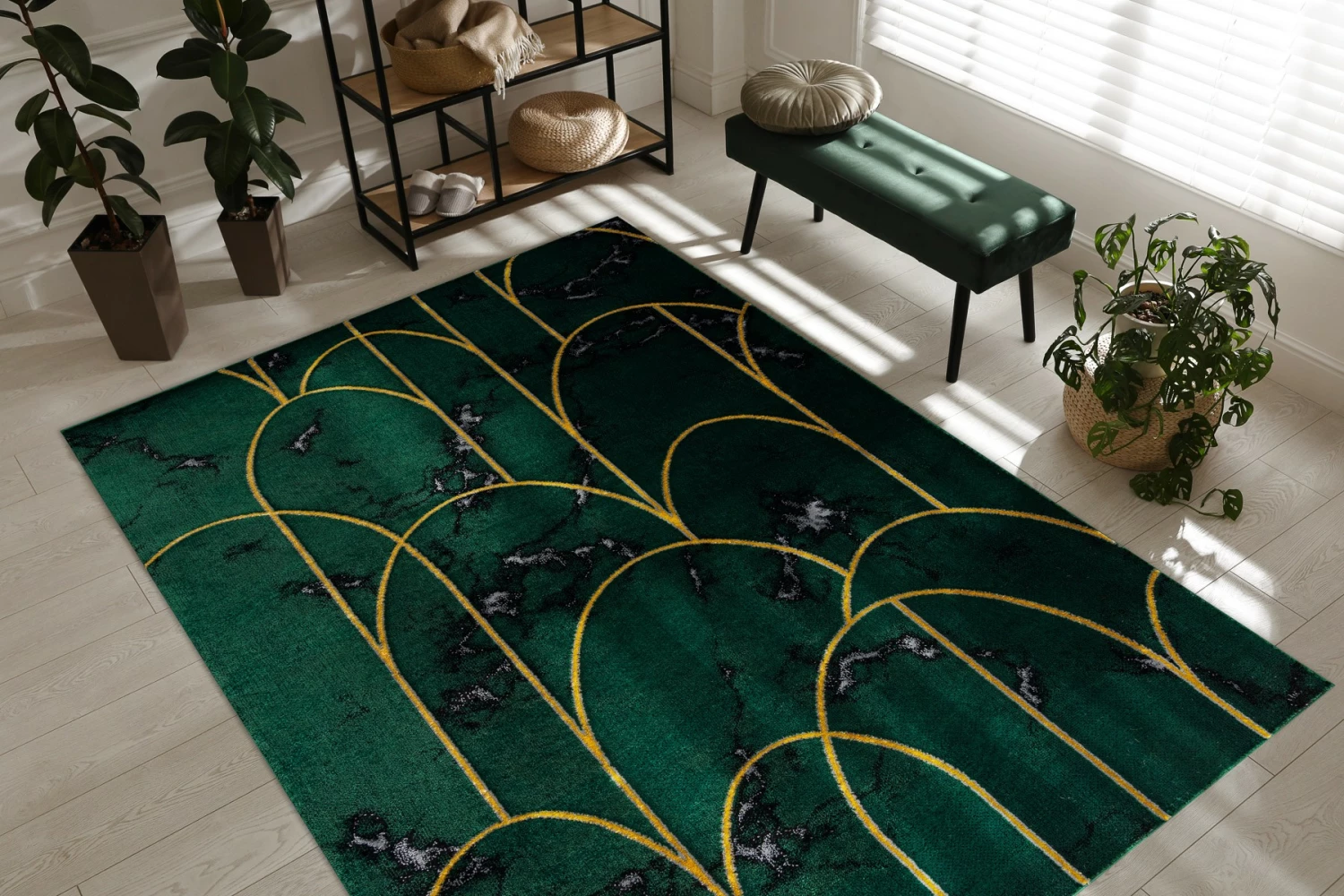 ▪ Hersteller: Dywany Łuszczów Luxus und Eleganz für Ihr Zuhause – Teppiche aus der Kollektion EMERALDEin Teppich ist ein Accessoire, das sehr oft den Charakter eines Innenraums dominiert und dessen größtes dekoratives Element ist. Es lohnt sich also, ein Modell zu wählen, dessen Design den Stil der Wohnung und den Geschmack der Familienmitglieder unterstreicht. Teppiche aus der EMERALD-Kollektion sind schöne Accessoires im Glamour-Stil. Trendige Muster in Kombination mit eleganten Farben verleihen jedem Interieur einen Hauch von Luxus. Neben dem ästhetischen Wert der Kollektion ist auch die höchste Qualität der Verarbeitung. Das bei der Herstellung verwendete Polypropylen mit einem Zusatz von Polyester sorgt dafür, dass sich sowohl die Haushalte als auch die Gäste über den Komfort des Teppichs freuen. Die Kombination dieser Fasern führt dazu, dass der Teppich je nach Einfallswinkel seine Farbe ändern kann und der Faden schimmert – eine natürliche Eigenschaft von Polyester.Das exklusive Design der EMERALD-Teppiche passt perfekt in Ihr Wohnzimmer, Schlafzimmer oder Ankleidezimmer. Er ist eine perfekte Ergänzung zu modernen Innenräumen. Bei klassischen Arrangements hingegen unterstreichen die eleganten Farben die Ruhe und Harmonie des Stils.Merkmale der Teppichkollektion EMERALD:- Geschmackvolle Motive in Kombination mit eleganten Farben begeistern jeden Liebhaber von Glamour-Stil und moderner Eleganz- Der Zusatz von Gold in jedem Muster unterstreicht den Chic und die Originalität der Kollektion – Der 12 mm dicke Flor ist leicht sauber zu halten, regelmäßiges Staubsaugen reicht aus, damit der Teppich viele Jahre lang gut aussieht- Die Kombination aus hochwertigem Polypropylen und Schrumpfpolyester macht EMERALD-Teppiche langlebig, abriebfest und angenehm im Griff- Das synthetische Garn ist völlig unbedenklic