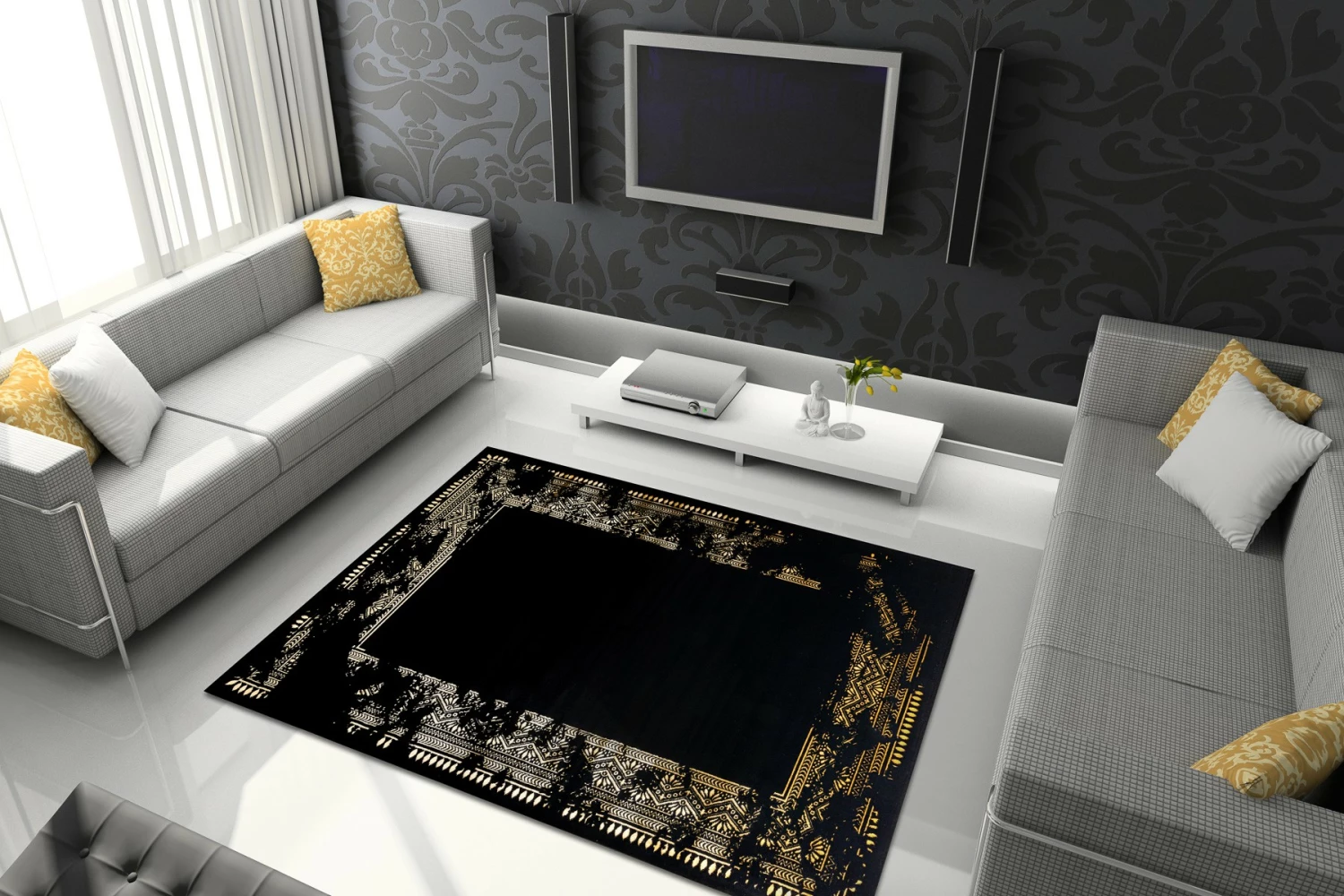 Kombination aus schwarzer Farbe mit Grau- und Goldtönen, die sich perfekt für jedes Interieur eignet