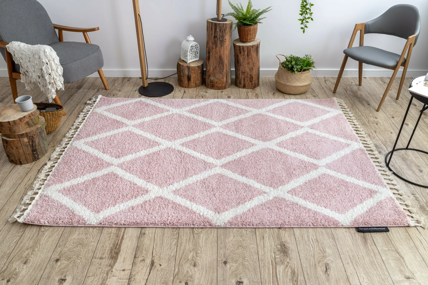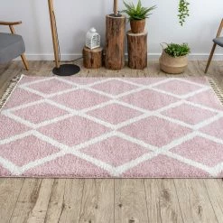 Einfache, geometrische Muster und geflochtene Quasten verweisen auf den Boho-Stil.Ihre Borsten sind hoch, dick und elastisch, wodurch sie sich sehr flauschig und weich anfühlen. Außerdem lassen sich die Farben in den Farben Creme, Beige, Grau und Pink erhalten dass BERBER Teppiche dem Interieur eine unglaubliche Gemütlichkeit und Wärme verleihen.Die für die Produktion verwendete zuverlässige Polypropylenfaser verleiht ihnen hohe Qualität und Haltbarkeit.