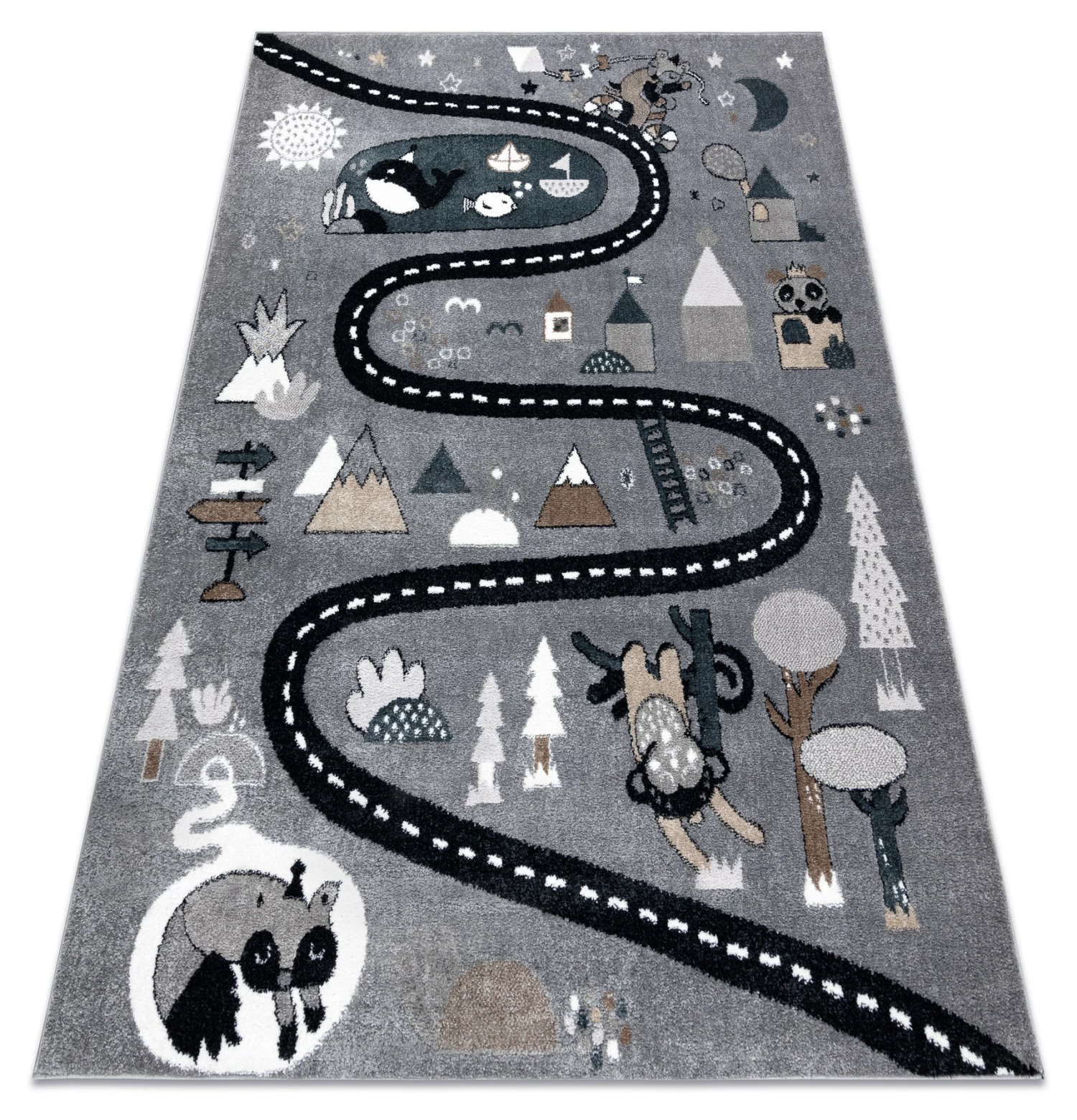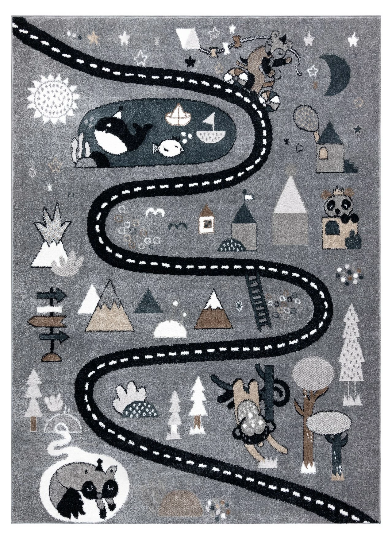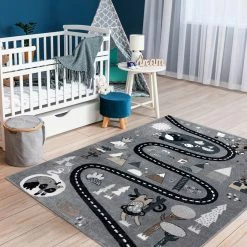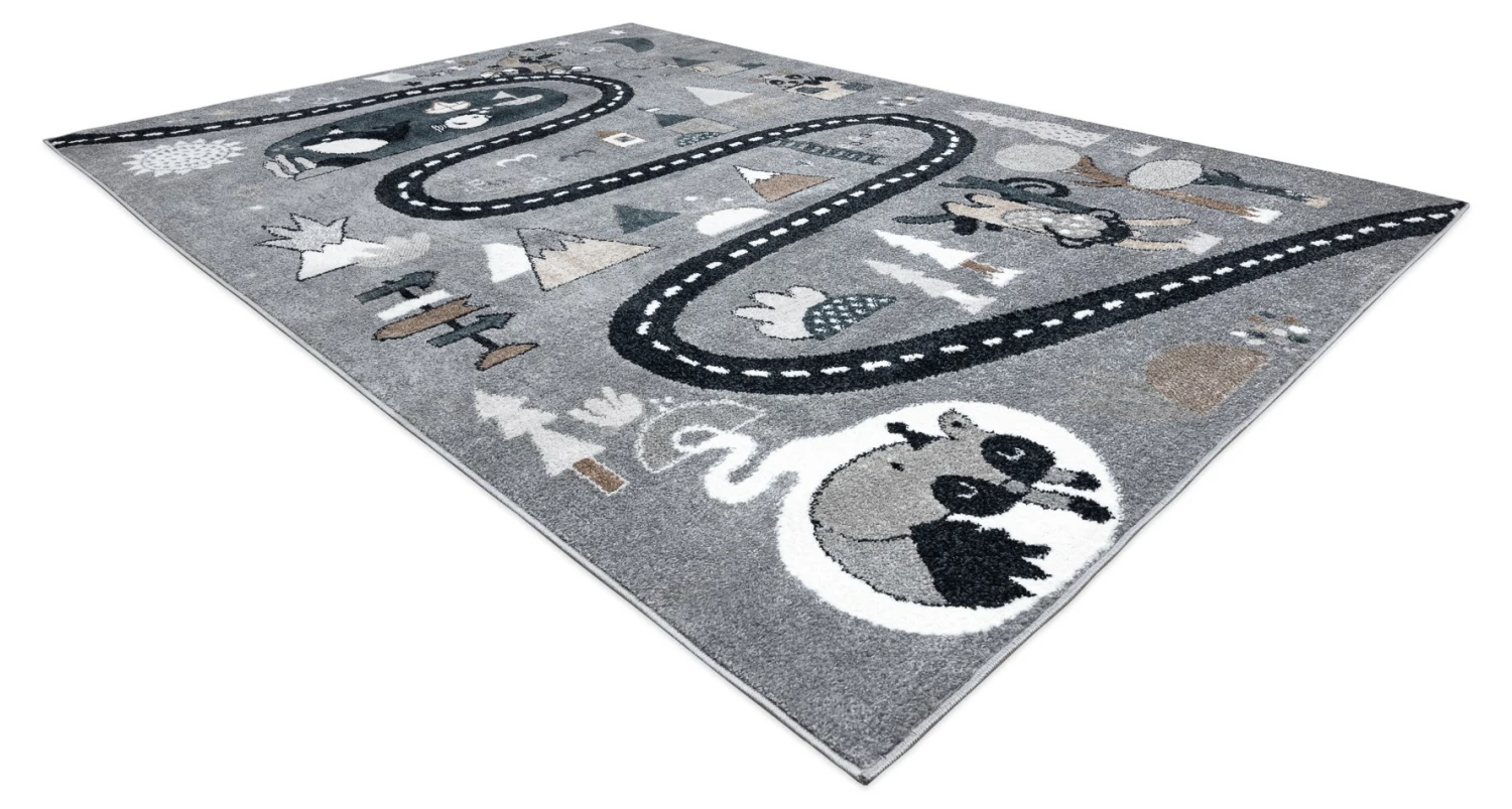 Es besteht kein Zweifel daran, dass man sich manchmal nicht um Kinder kümmern kann. Sobald sie anfangen zu krabbeln, sind sie überall. Deshalb ist es so wichtig, die Oberflächen zu schützen, auf denen sie sich bewegen. Teppiche sind nicht nur eine schöne Dekoration, die dem Kinderzimmer Charme verleiht, sondern vor allem schaffen sie dank ihrer weichen Fasern einen sicheren Raum.Die Teppiche aus der FUN-Kollektion tragen dazu bei, eine sichere und sehr komfortable Spielzone für die Kleinsten zu schaffen. Sie sind aus extrem weichem Friese-Polypropylen gefertigt, das wirksam vor kalten Böden schützt. Diese Teppiche werden mit Rücksicht auf die Gesundheit der Kinder hergestellt – dieses Produkt ist für Kinder, die mit Allergien zu kämpfen haben, sicher.Die FUN-Kollektion geht über die Standarddekoration für Kinder hinaus. Ihr Design regt zu Spaß und Aktivität an. Jedes Kind wird von der Vielfalt der Farben und den schönen Mustern begeistert sein.Das Modell FUN ROUTE ist eine Vorlage, die für kleine Reisende entwickelt wurde. Das Thema der Straße, wo man Halt machen kann, um verschiedene, interessante Tiere zu treffen, wird die Phantasie anregen und den Erwerb von Wissen fördern. Schöne Farben und eine angenehme Struktur machen auch andere Spiele auf dem Boden zum Vergnügen. Der Teppich fügt sich wunderbar in die Einrichtung eines Kinderzimmers ein und spendet viel Wärme und Komfort.Charakteristische Merkmale der Teppiche der Kollektion FUN:- Ein schönes Muster in Kombination mit ausdrucksstarken Farben unterstreicht den kindlichen Charakter des Zimmers und regt zum Spielen und Entdeck