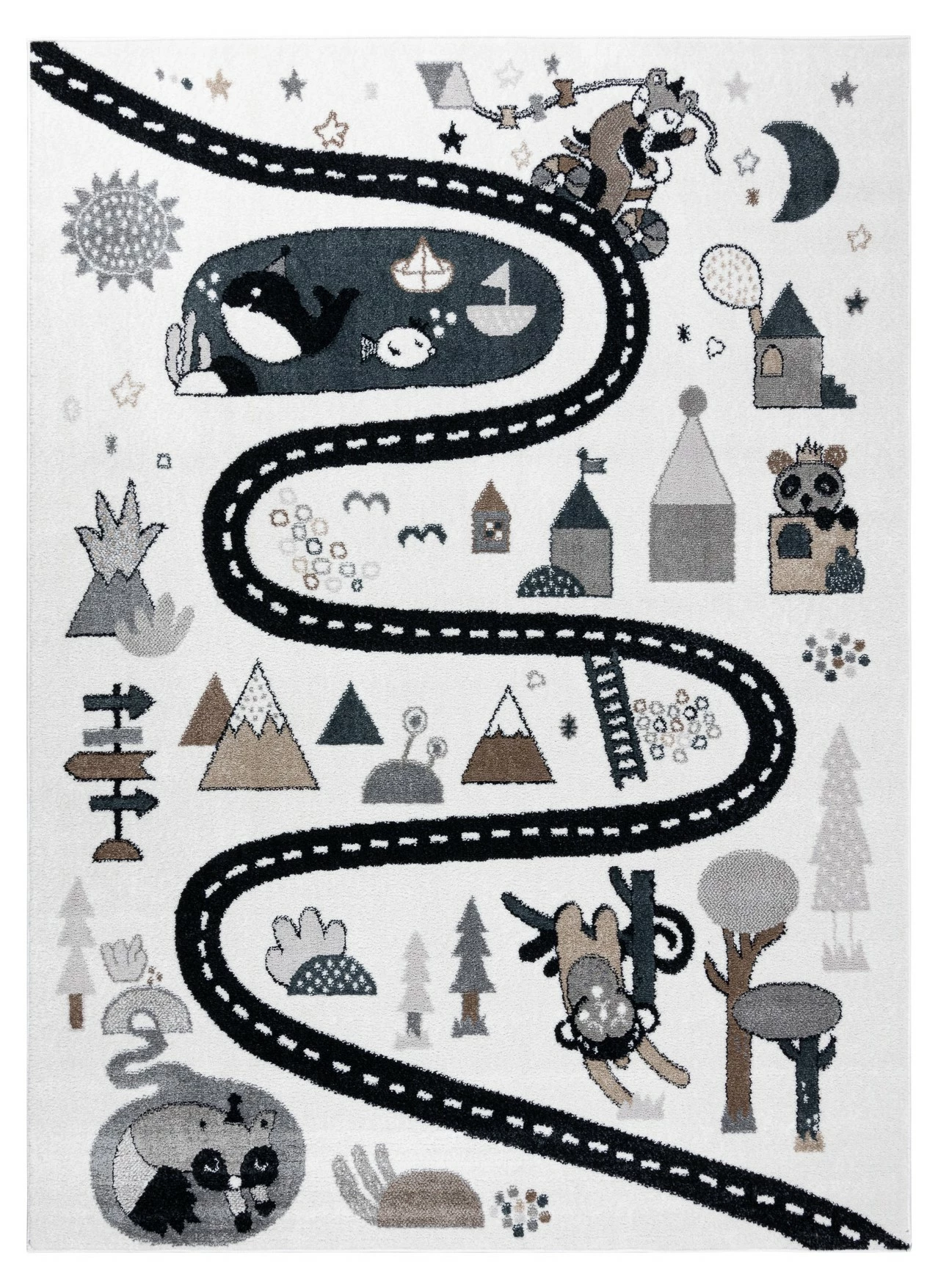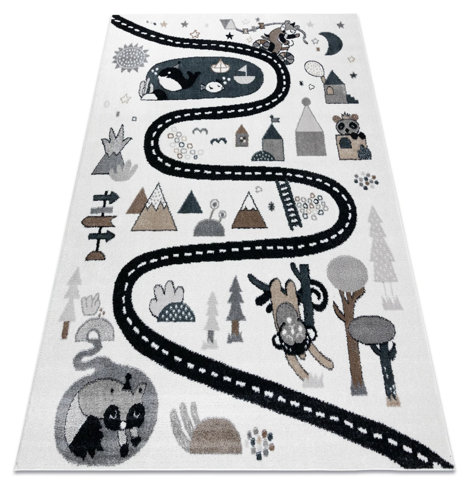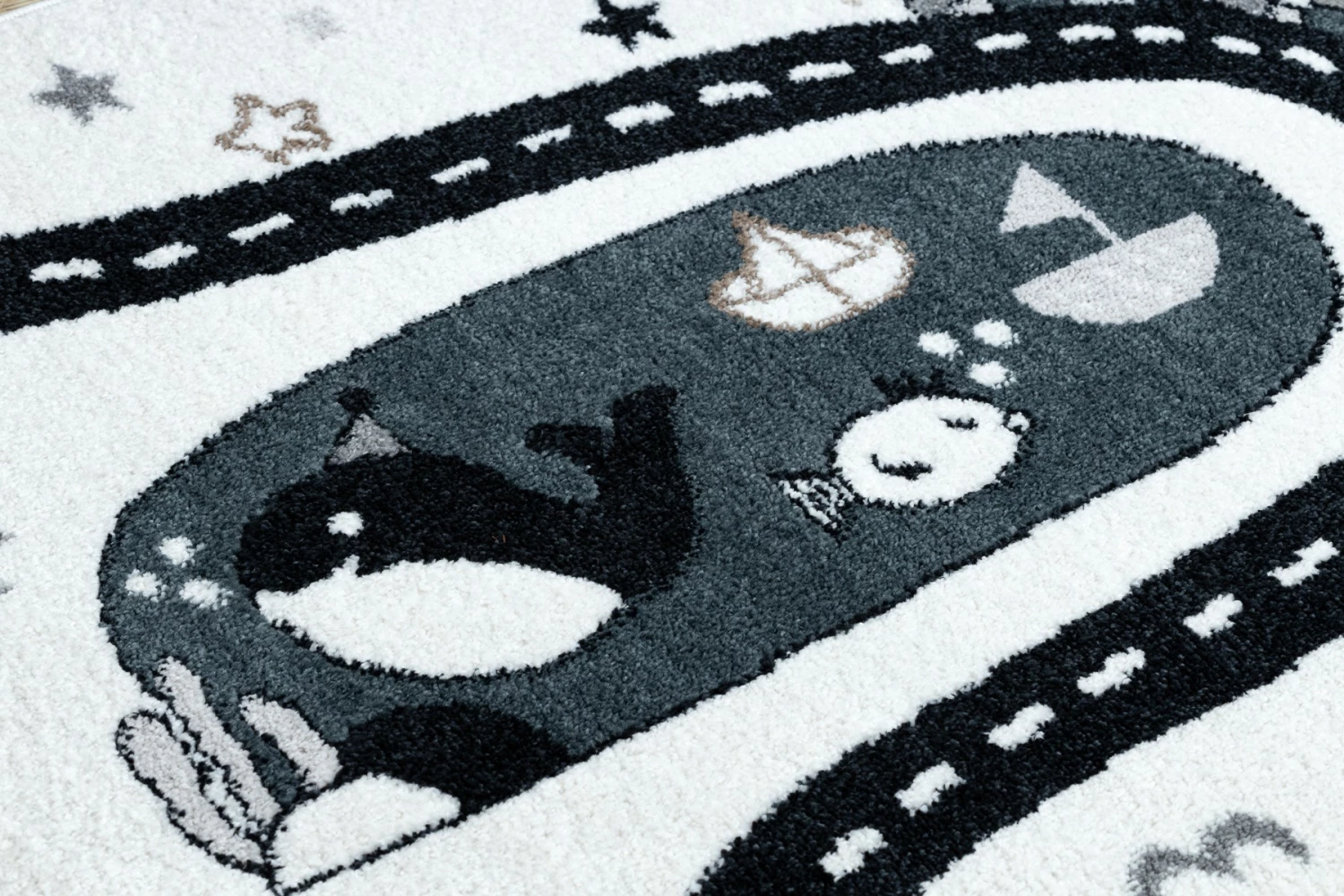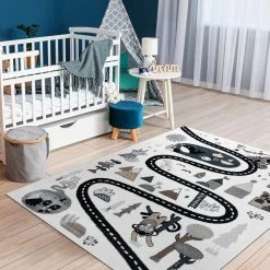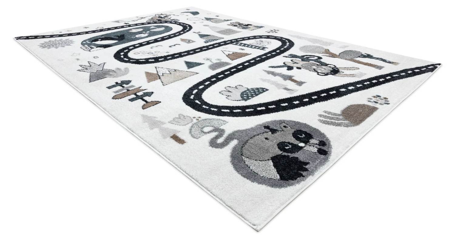Es besteht kein Zweifel daran, dass man sich manchmal nicht um Kinder kümmern kann. Sobald sie anfangen zu krabbeln, sind sie überall. Deshalb ist es so wichtig, die Oberflächen zu schützen, auf denen sie sich bewegen. Teppiche sind nicht nur eine schöne Dekoration, die dem Kinderzimmer Charme verleiht, sondern vor allem schaffen sie dank ihrer weichen Fasern einen sicheren Raum.Die Teppiche aus der FUN-Kollektion tragen dazu bei, eine sichere und sehr komfortable Spielzone für die Kleinsten zu schaffen. Sie sind aus extrem weichem Friese-Polypropylen gefertigt, das wirksam vor kalten Böden schützt. Diese Teppiche werden mit Rücksicht auf die Gesundheit der Kinder hergestellt – dieses Produkt ist für Kinder, die mit Allergien zu kämpfen haben, sicher.Die FUN-Kollektion geht über die Standarddekoration für Kinder hinaus. Ihr Design regt zu Spaß und Aktivität an. Jedes Kind wird von der Vielfalt der Farben und den schönen Mustern begeistert sein.Das Modell FUN ROUTE ist eine Vorlage, die für kleine Reisende entwickelt wurde. Das Thema der Straße, wo man Halt machen kann, um verschiedene, interessante Tiere zu treffen, wird die Phantasie anregen und den Erwerb von Wissen fördern. Schöne Farben und eine angenehme Struktur machen auch andere Spiele auf dem Boden zum Vergnügen. Der Teppich fügt sich wunderbar in die Einrichtung eines Kinderzimmers ein und spendet viel Wärme und Komfort.Charakteristische Merkmale der Teppiche der Kollektion FUN:- Ein schönes Muster in Kombination mit ausdrucksstarken Farben unterstreicht den kindlichen Charakter des Zimmers und regt zum Spielen und Entdeck