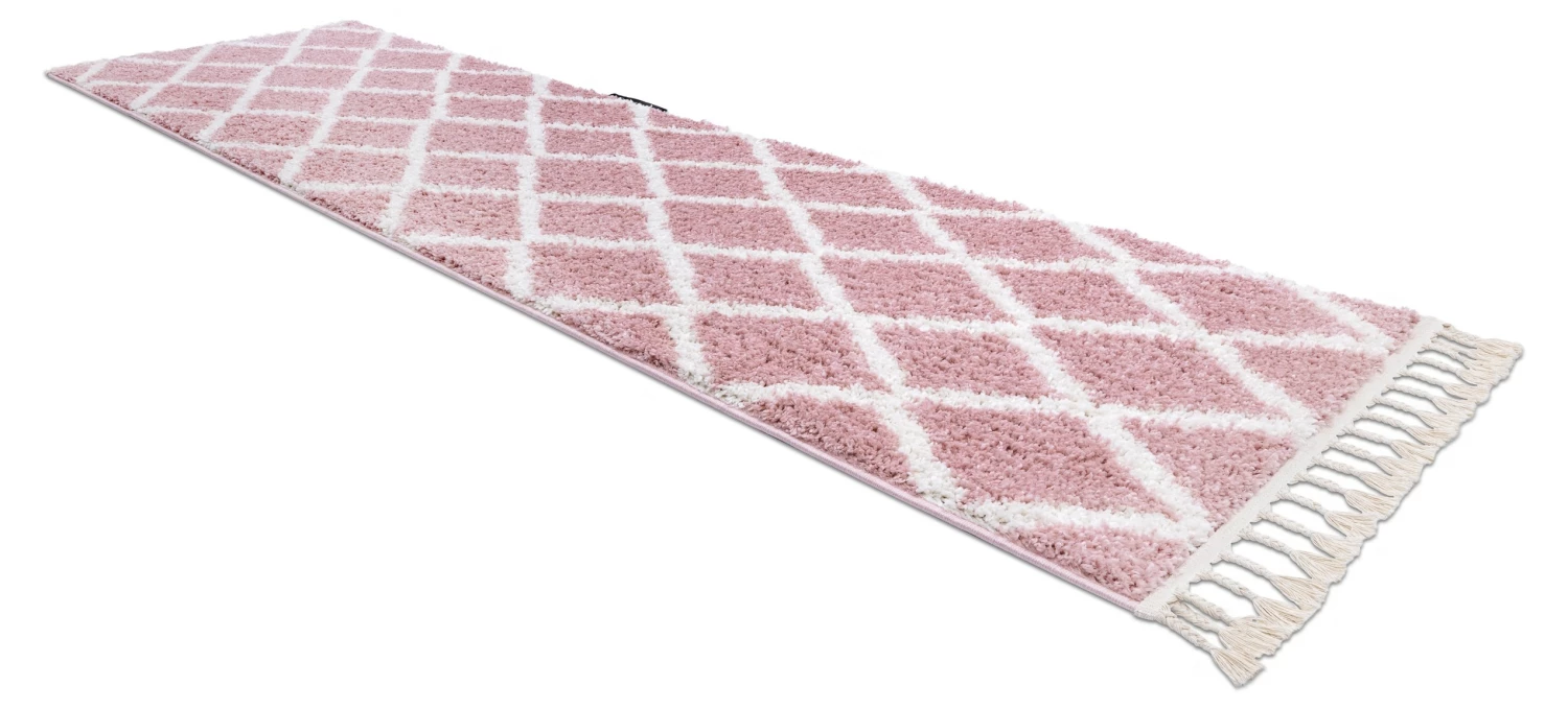 BERBER ist eine einzigartige Kollektion von Teppichen vom Typ „Shaggy“. Einfache, geometrische Muster und geflochtene Quasten verweisen auf den Boho-Stil.Ihre Borsten sind hoch, dick und elastisch, wodurch sie sich sehr flauschig und weich anfühlen. Außerdem lassen sich die Farben in den Farben Creme, Beige, Grau und Pink erhalten dass BERBER Teppiche dem Interieur eine unglaubliche Gemütlichkeit und Wärme verleihen.Die für die Produktion verwendete zuverlässige Polypropylenfaser verleiht ihnen hohe Qualität und Haltbarkeit.