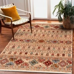 ▪ Zusammensetzung: 100% natürliche Wolle Lieben Sie Luxuslösungen? Wenn ja, dann sind Wollteppiche perfekt für Sie.Stellen Sie sich Ihren Lieblings-Wollpullover vor… Warm und weich. Wenn Sie ihn anfassen, fühlen Sie sich sehr wohl.Was wäre, wenn ein Teppich aus dem gleichen Material hergestellt wäre? Es ist möglich. Wolle ist bei weitem das beste natürliche Material, das für die Herstellung von Teppichen verwendet werden kann.Die KESHAN Teppichkollektion wurde aus 100% Wolle hergestellt. Sie ist ein natürlicher und vollständig erneuerbarer Rohstoff.Seine Eigenschaften sind perfekt für Häuser, in denen es schwierig ist, die richtige Luftfeuchtigkeit zu halten.Wolle nimmt Feuchtigkeit aus der Luft auf, wenn es zu viel davon gibt, und gibt sie wieder ab, wenn sie fehlt. Das ist sehr gesund für das Atmungssystem, besonders für Menschen, die damit Probleme haben.Ein Wollteppich ist auch ein großartiger Wärmeisolator. Sie können ihn sogar auf einen kalten Fußboden legen, und das Gehen darauf wird immer noch angenehm sein.Der Innenraum erhält eine zusätzliche Isolierung, dank derer es einfacher ist, die richtige Lufttemperatur zu halten.Charakteristische Eigenschaften der KESHAN-Teppiche:- Hergestellt aus 100% natürlichem Wollmaterial. Daher ist es umweltfreundlich- Elegante und schöne Farben, kombiniert mit einem Muster im Vintage-Stil, bringen viel Eleganz und Luxus in jedes Interieur- Er hat das OEKO-TEX-Zertifikat, das eine für die Umwelt und den Menschen sichere Zusammensetzung garantiert- Die höchste Qualität in Verbindung mit hoher Widerstandsfähigkeit des Materials und seiner Flexibilität machen dieses Produkt zu einer schönen Dekoration für viele Jahre- Ein Teppich aus Wolle kann anfangs leicht stauben – das ist eine natürliche Eigenschaft dieses Materials. Wir versichern Ihnen jedoch, dass dies in keiner Weise lästig oder schädlich ist.